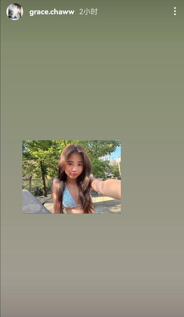曹格 12 岁女儿 Grace 晒泳装照 对镜头自拍眼神自信