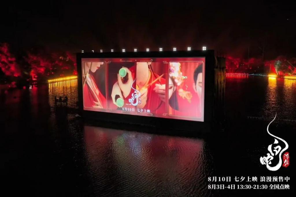 巨大屏幕立在湖光潋滟之上,观众坐在烟柳画桥边。
