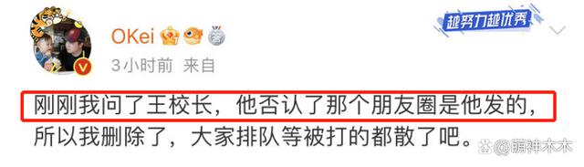 紧接着,这名知情博主再度发文透露,他已和王思聪进行沟通,并询问了有关朋友圈截图的传闻,结果王思聪否认了那则朋友圈文字是由他所发。随后该博主一边删除之前那张截图,一边调侃众多想要 " 讨打等赔款 " 的网友们赶紧散了吧。