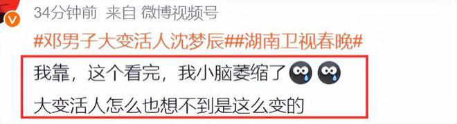 还有更敷衍的是湖南卫视春晚的变魔术。邓男子大变活人沈梦辰,居然是直接脱掉衣服,扯掉头套,然后变成了沈梦辰,一旁的汪涵还露出了难以置信的夸张表情,网友却直呼太无语。
