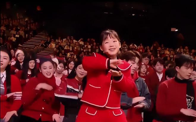 小年夜春晚,众人穿着一片喜气洋洋的红齐跳科目三,还是由一群小孩子领舞。虽然歌词进行了改编,但曲风和舞蹈却还是老样子。