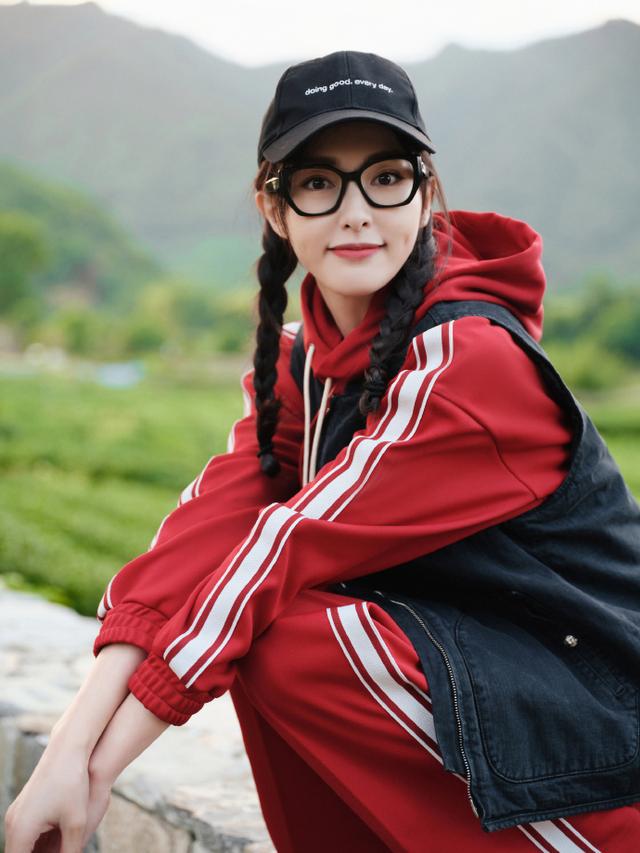 新浪娱乐讯 11 月 1 日,唐嫣工作室在微博分享一组唐嫣乡野间随拍。照片中,唐嫣身穿红色运动套装,戴着黑色棒球帽和黑框眼镜,梳着双麻花辫,青春靓丽。