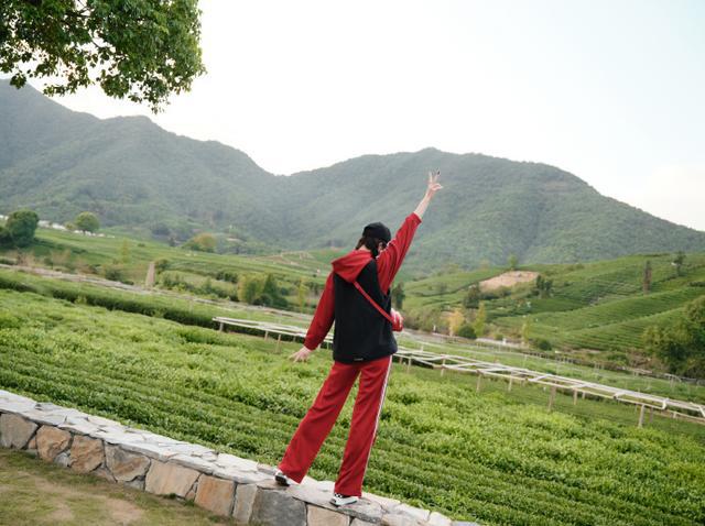 唐嫣分享户外田野随拍 穿红色运动套装扎双麻花辫元气满满