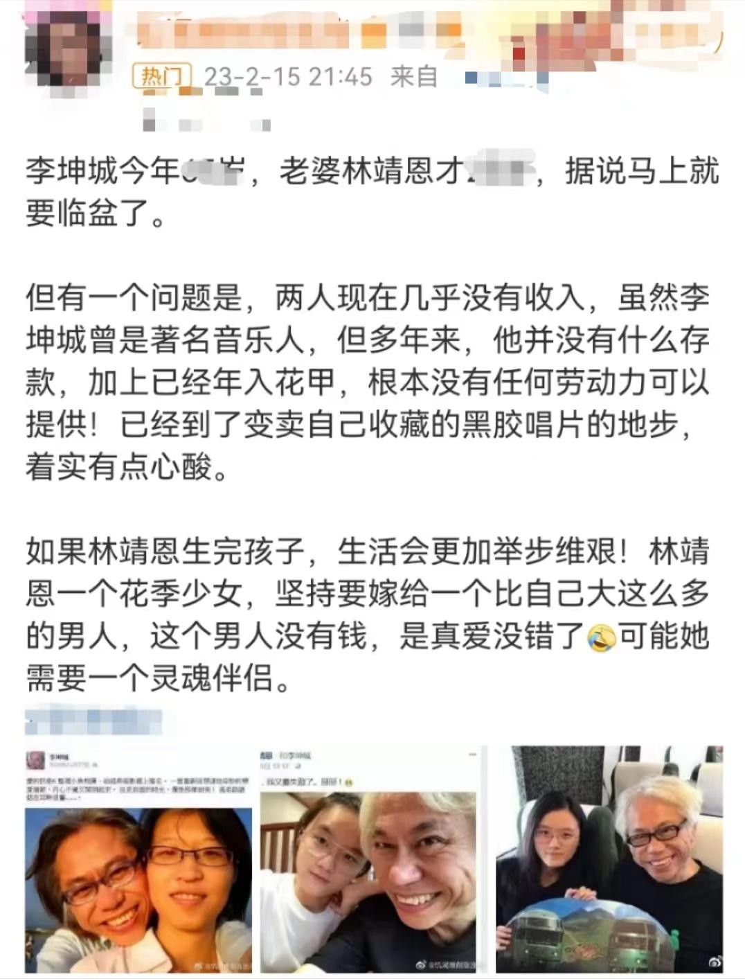 之前还有小道消息称李坤城为了维持生活不得不卖了自己珍藏很久的黑胶唱片,还埋怨林靖恩不知道节俭。