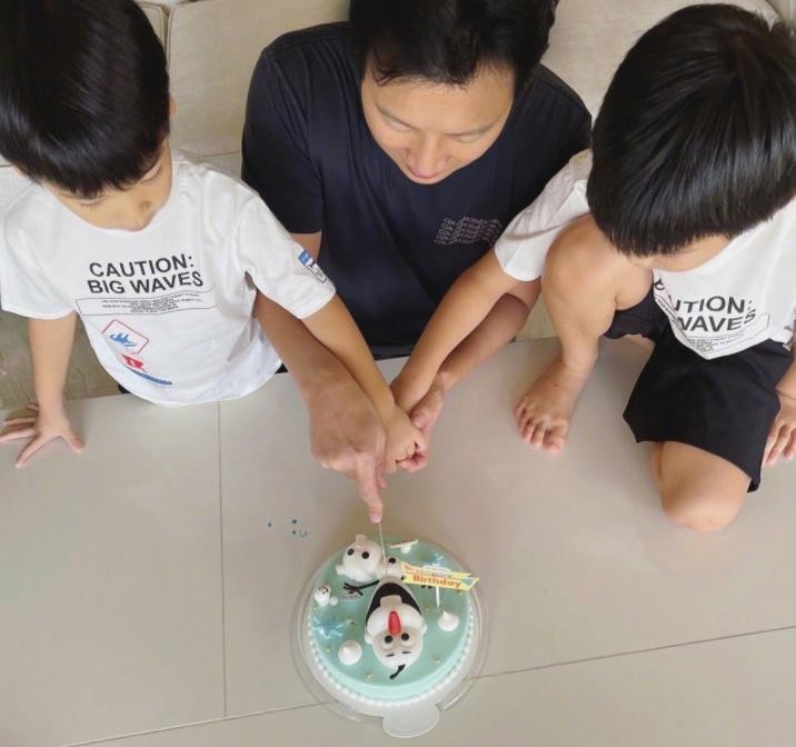 7月25日,侯佩岑在社交平台上发文给老公黄伯俊庆祝47岁生日,并晒出两个儿子和爸爸一起切蛋糕的照片。