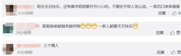 网友们纷纷在评论区里留言大赞他们一家人好幸福,两个小朋友也越来越帅了,并调侃侯佩岑有三个“情人”。