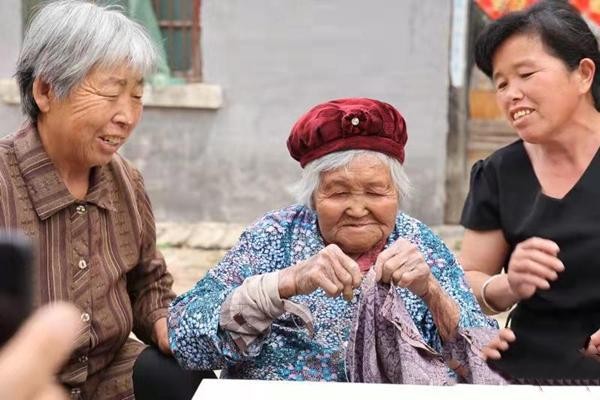 听到这句话后,一旁坐在轮椅上的刘秀荣非常自豪,她对记者和周围的村民们说自己要为他们“露一手“,说罢便让彭万胜帮自己拿来针线,自己要进行表演。