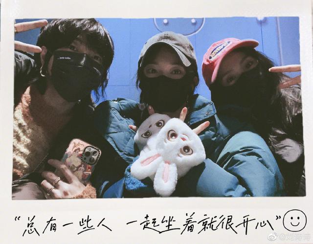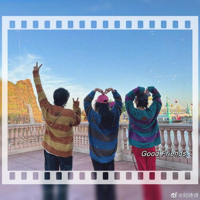 刘诗诗晒环球影城游玩照 和好朋友们比心合影开心自在