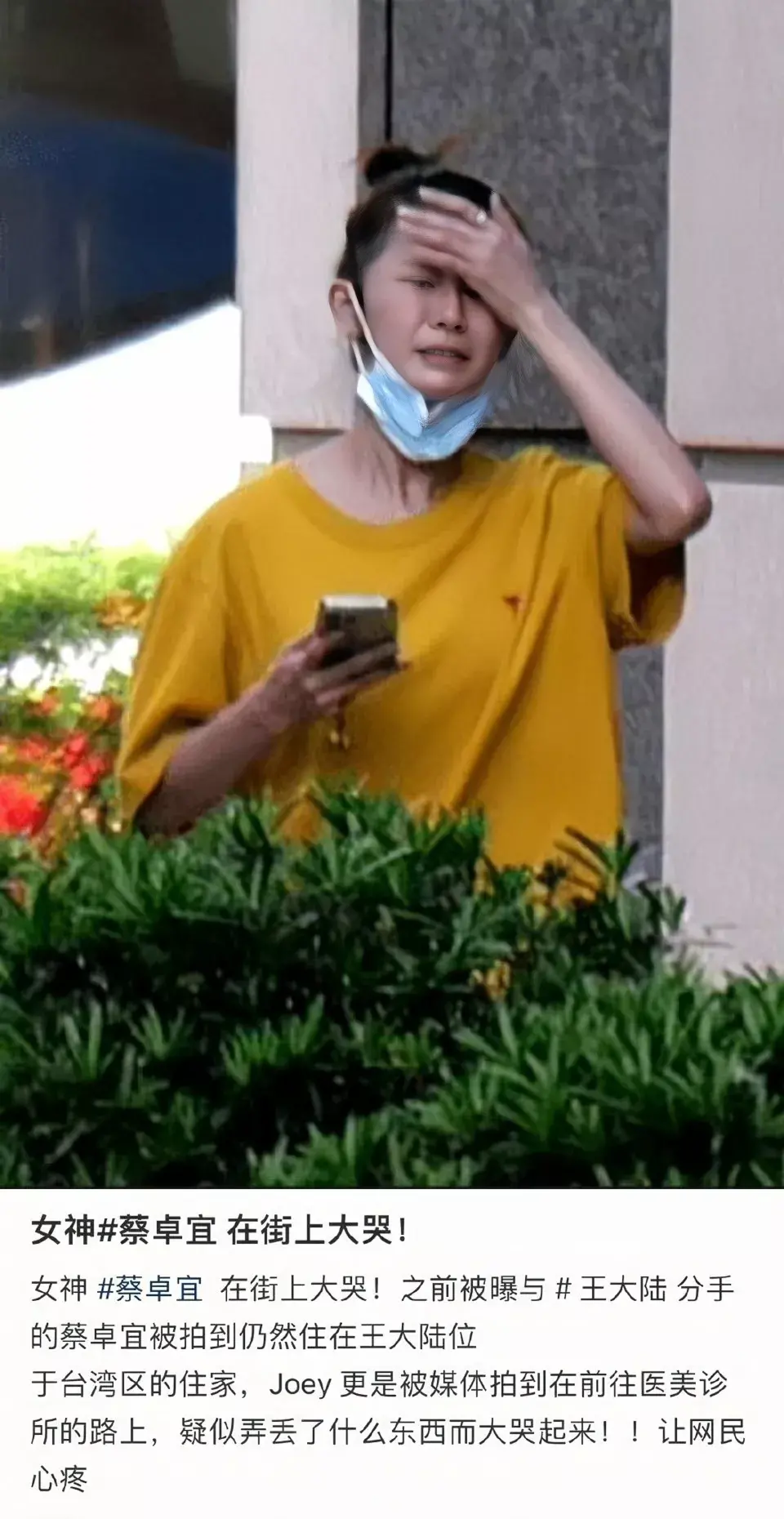 蔡卓宜街上痛哭照片曝光,本尊回应求网友放过,给个面子别传了好吗?