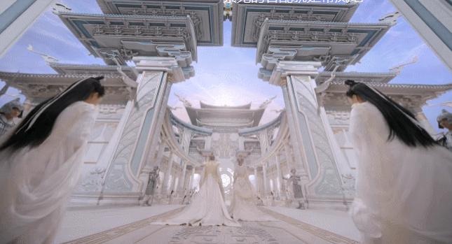 比如天帝天后入场的这个大殿,就神似当年锦觅大婚当天,杀死凤凰,吐出陨丹这场高光大戏的场景;