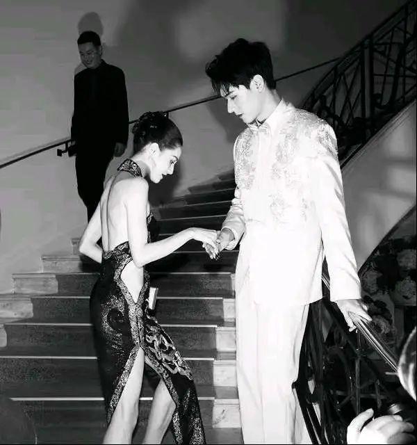 钟楚曦则是身穿黑金色的传统中式旗袍,搭配银杏发簪。
