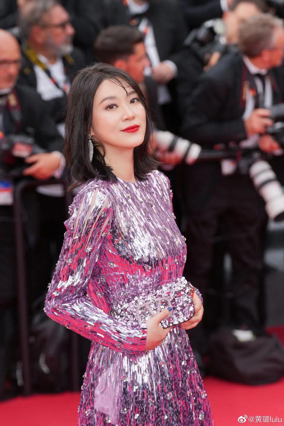 第四次走上戛纳红毯的黄璐这一次选择了一身紫色鎏光长裙 ↓