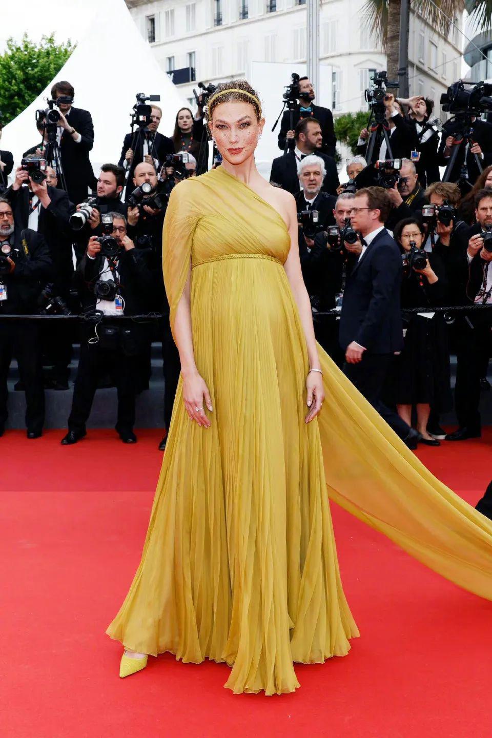 飘逸的黄色纱裙也是将孕肚完美遮盖。