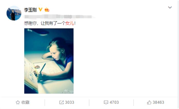 此前,李玉刚突然在社交平台上晒出了一张混血女孩的照片,还配文称“感谢有你,让我有了一个女儿”,一下引起了不少人的热议,怀疑李玉刚已经成立了家庭。