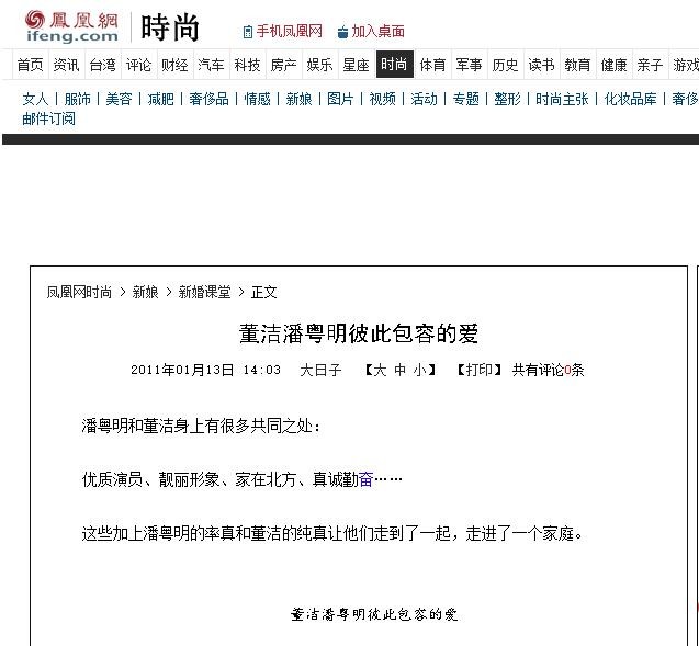 信息来源:手机凤凰网2011-01-13董洁潘粤明彼此包容的爱