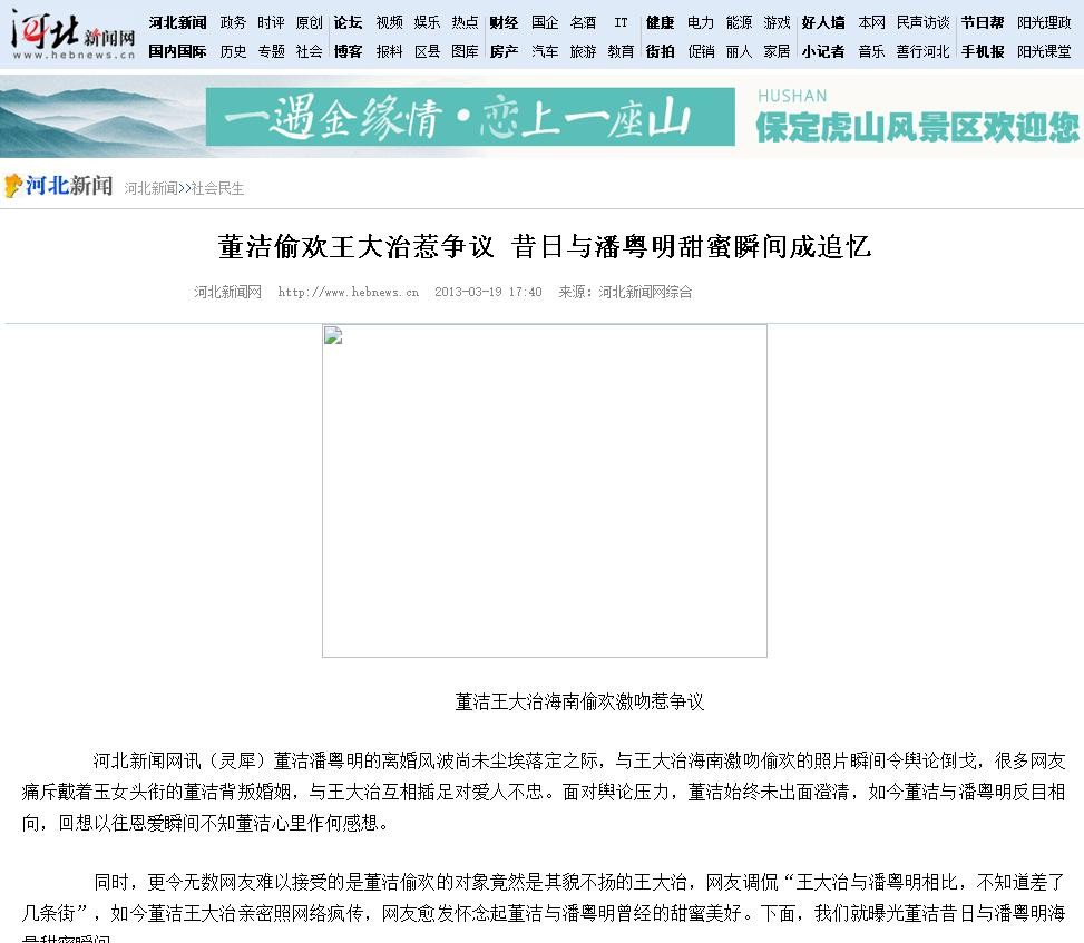 信息来源:河北新闻网2013-03-19董洁偷欢王大治惹争议 昔日与潘粤明甜蜜瞬间成追忆