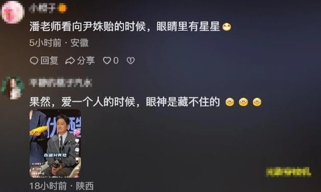 网友纷纷表示嗑到了,“潘老师眼睛里的星星藏不住了”、“这才是爱情该有的样子”评论区一片祝福声。