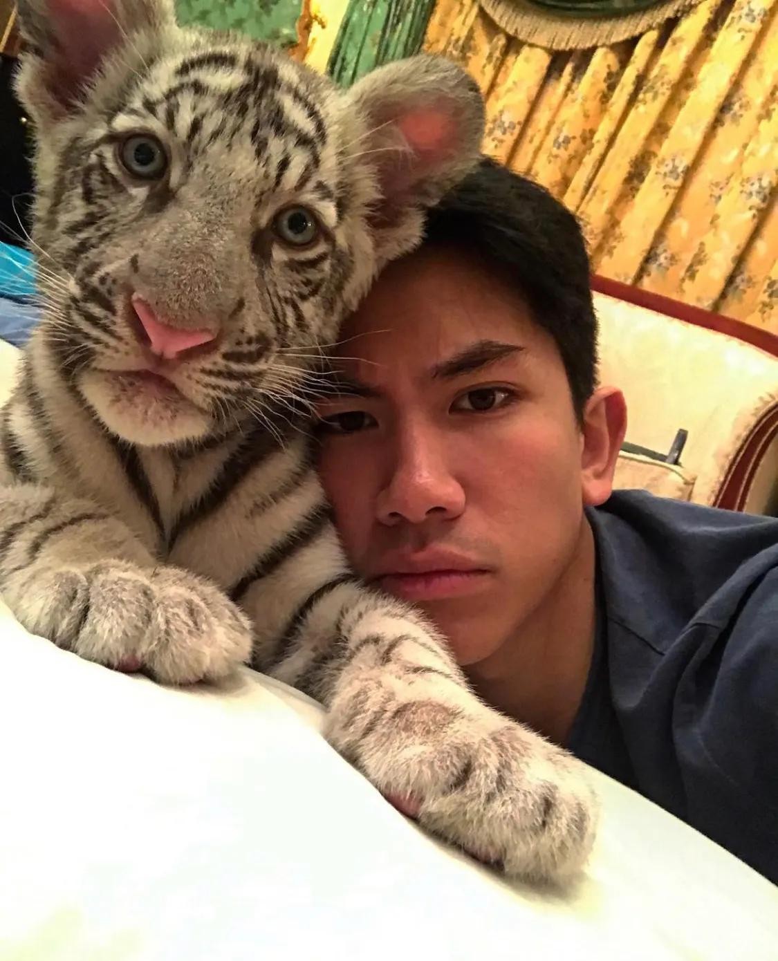 马丁经常在 Instagram发布他和宠物的照片。他养的宠物不太常见,白虎幼崽和豹猫。抱着豹崽在他的床上嬉戏,或者带着虎崽去海滩玩耍,果然有钱任性。