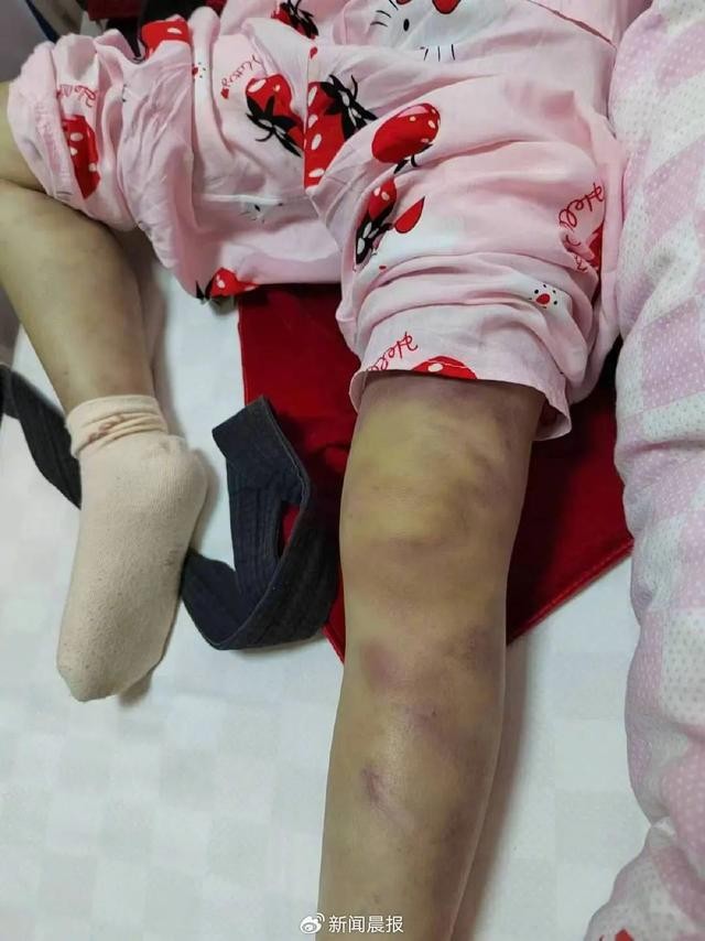 悦悦的腿部有淤青。受访者供图