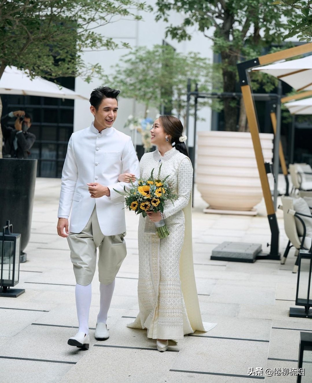 根据泰媒的报道,今年六月份的时候,New在海边安排了一个简单、浪漫的求婚仪式,New求婚成功之后,当时娱乐圈的很多明星和网友都表示了祝贺。然后就到了10月18日,两个人低调地举行了大婚仪式,由于疫情的原因,婚礼只邀请了双方的家人和亲友参加。虽然说是低调的婚礼,但是看泰媒给出的资料,新娘所穿的婚纱价值就达到了50万泰铢,戒指是12克拉,所以很多泰媒都称这是一场“12克拉”的婚礼。不过,泰国社会豪门结婚的一个很受关注的问题,就是彩礼的数字,小烟没有看到报道哈。