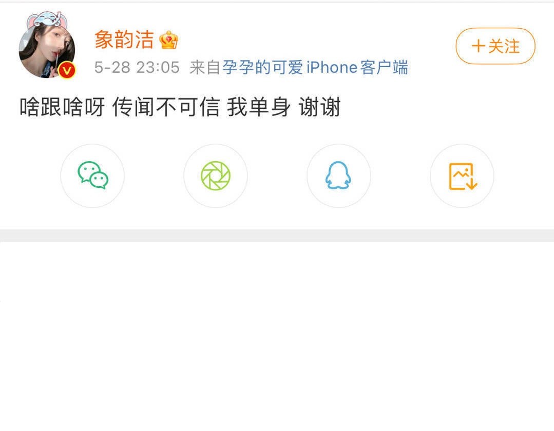 6月2日,象韵洁发文回应与吴亦凡的恋情,表示:“我跟他确实因为好感互相了解过接触过 但绝不是有些网友口中那种不堪的关系 在我眼里他就是单纯渴望爱情的大男孩 感情的事没有谁对谁错 希望各自安好。”