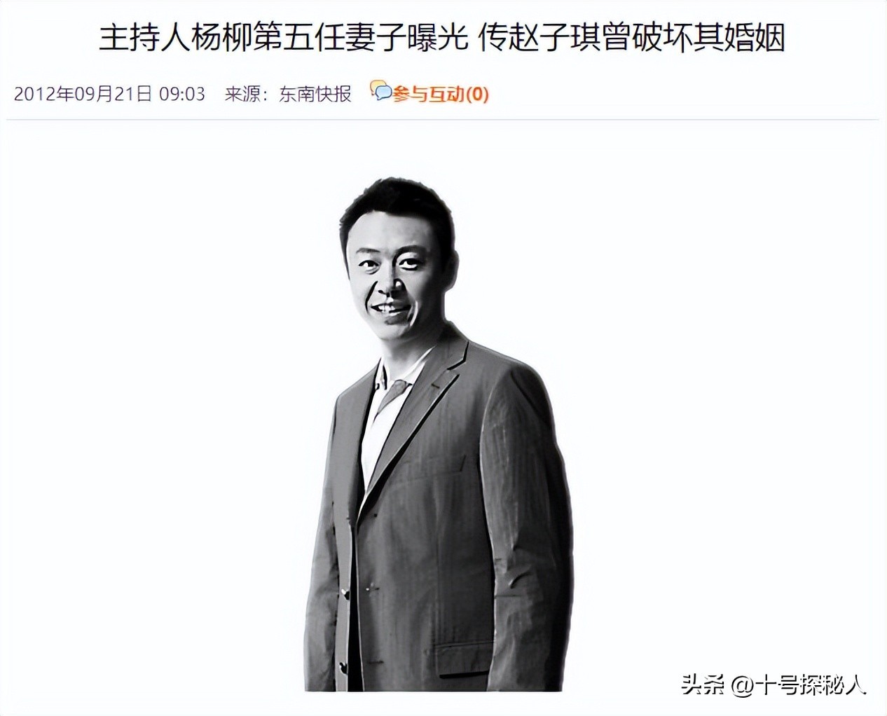 信息来源:主持人杨柳第五任妻子曝光 传赵子琪曾破坏其婚姻2012年09月21日 09:03 来源:东南快报