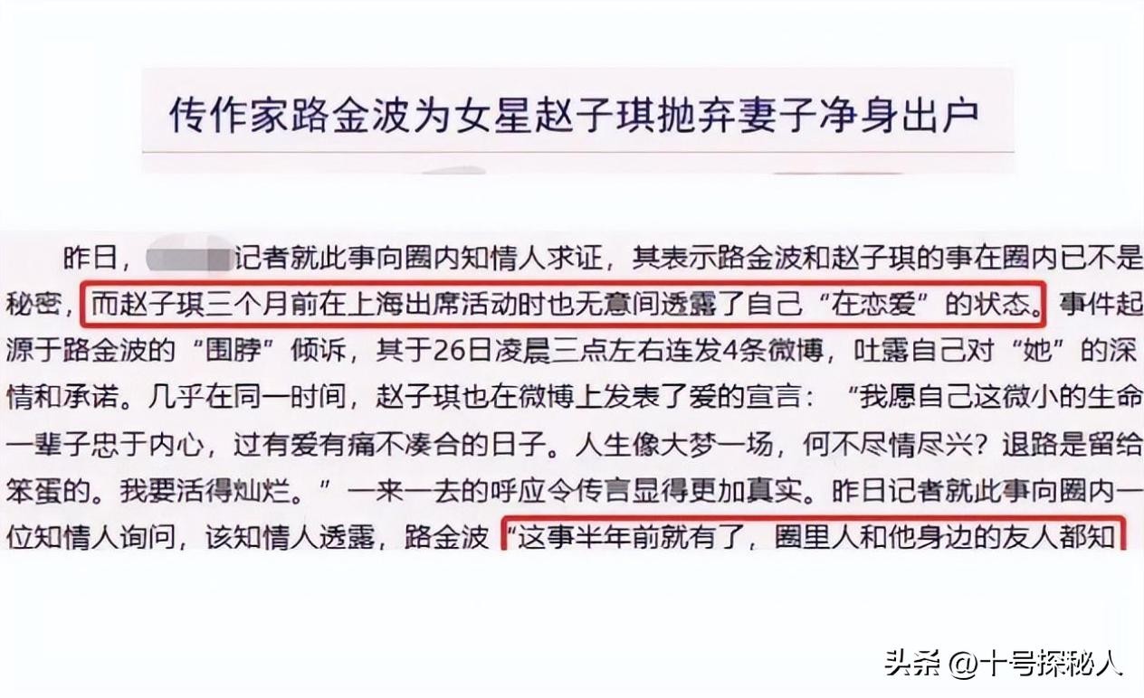 据说路金波在跟赵子琪交往时,他还是有妇之夫。