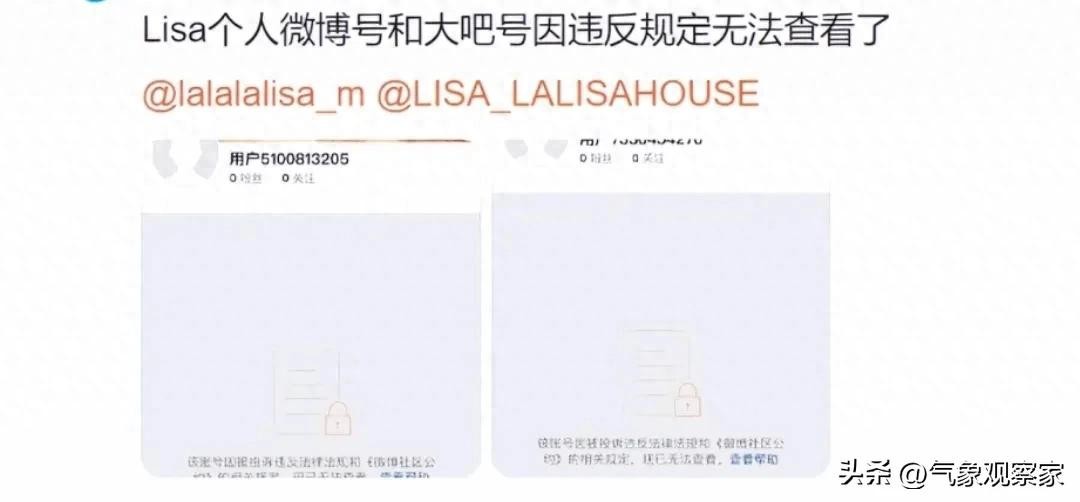 11月1日,网友发现Lisa在中国的微博账号和后援会账号全部被封。