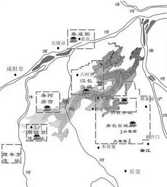 在古代风水学看来,西安龙脉汇聚,是个帝王之气十分昌盛的地方。其中的主龙脉汇聚天地灵气,南出秦岭,北饮渭河之水,刚好位于今天西安市的中轴线上。北门外的龙首村就是因此而得名。