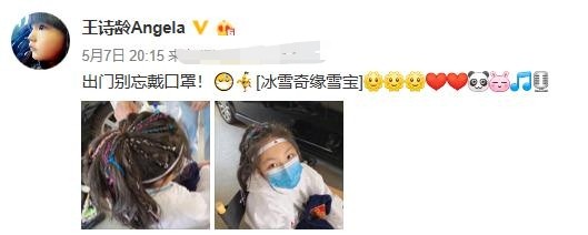 5月7日王诗龄在自己的社交账号上晒出两张近照,还一副小大人的样子提醒大家:出门别忘戴口罩,可以说是十分贴心了。