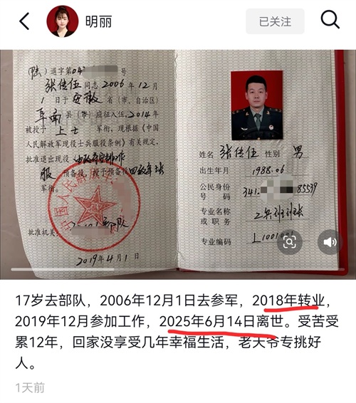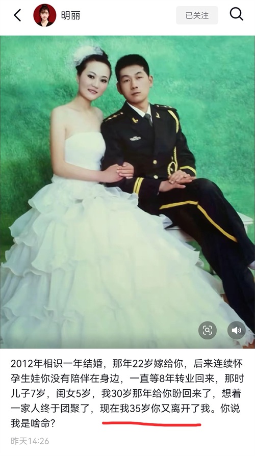 近日,安徽博主“明丽”在网络上发布丈夫去世的消息,引发网友热议,在很多人看来这是不可思议的事情,因为他丈夫是一位退伍军人,身体素质应该很好。