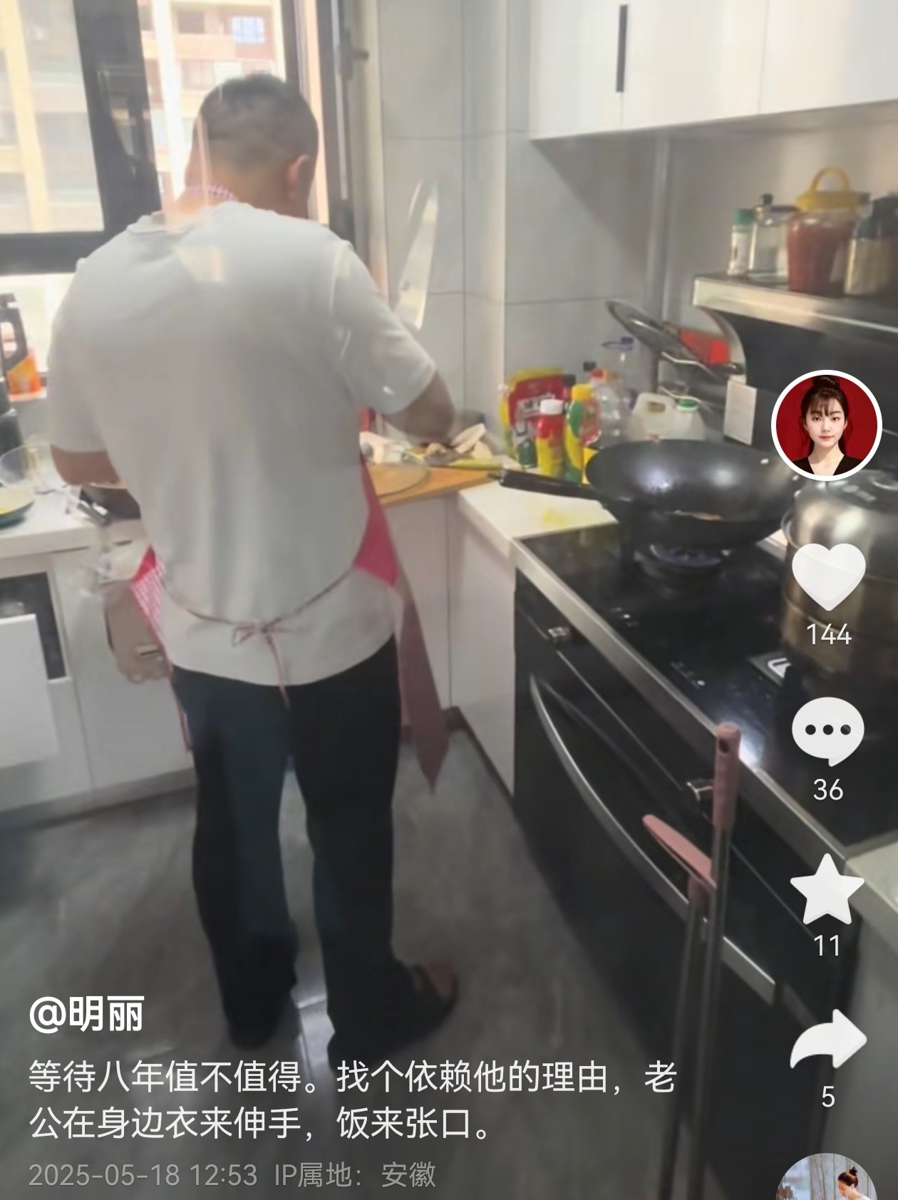 在明丽的很多视频中,都能看到她家厨房里永远都是张传伍,每天想方设法,做孩子和妻子喜欢吃的菜,而且每一样看上去都很美味。