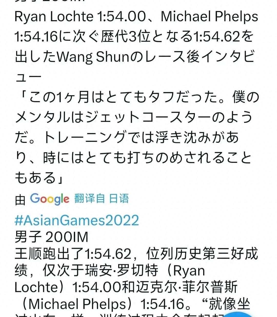 日本媒体对汪顺的夺冠表示高度赞赏。