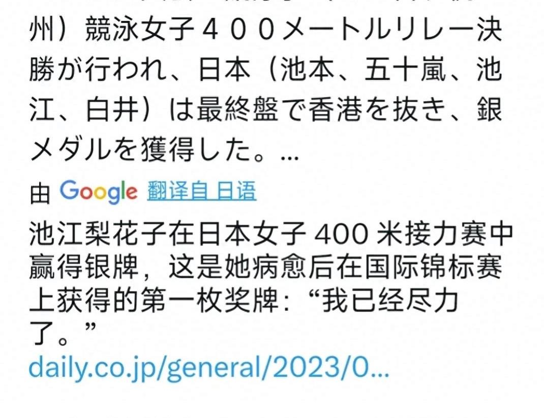 铃木里美作为日本游泳界的代表,在接受媒体采访时表示,她一直以来都以中国选手唐千婷的游泳作为参考,因为唐千婷在技术和力量方面都具备出色的平衡,给予了她很大的启发。