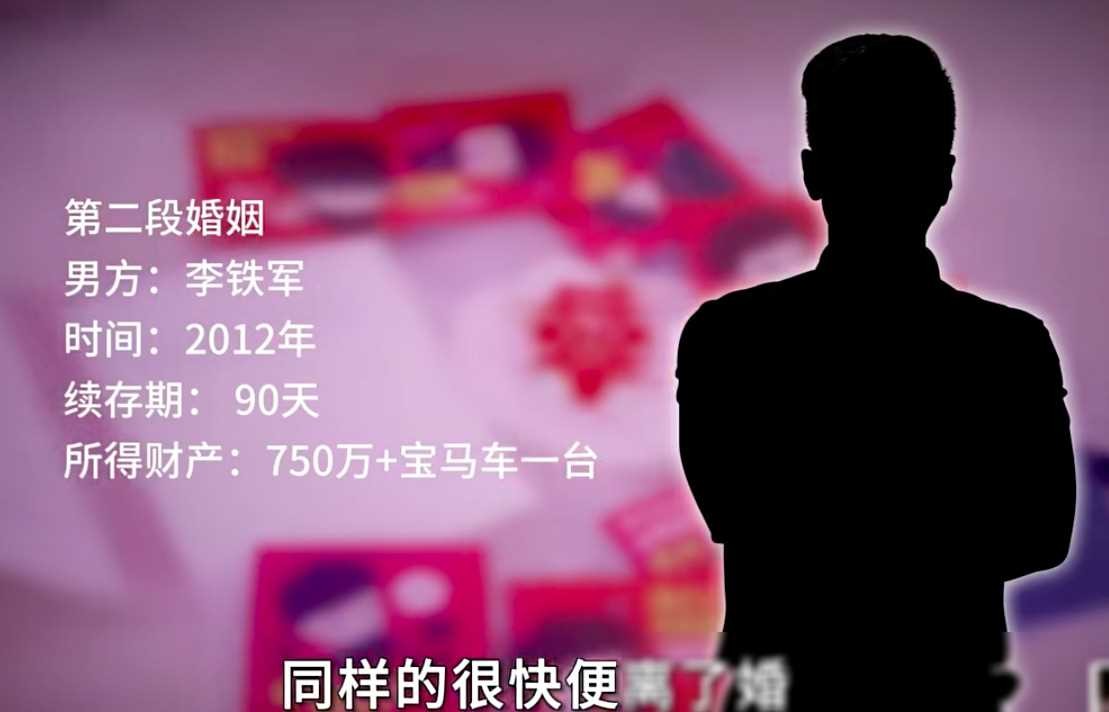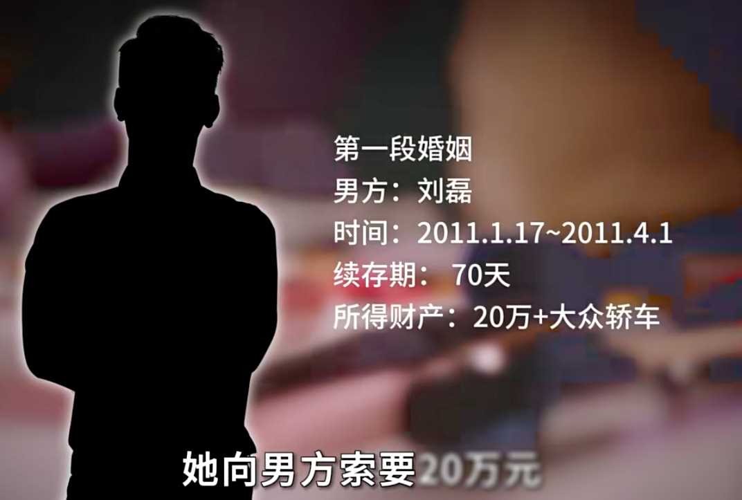 看看她的婚姻史吧,简直就是一出好戏。第一次结婚就是不到三个月就离了,还弄了个20万大元宝加辆车。第二次就更绝了,才三个月就要离婚,然后捞了750万和一辆宝马。这样的操作简直就是见钱眼开,根本就不把婚姻当回事。
