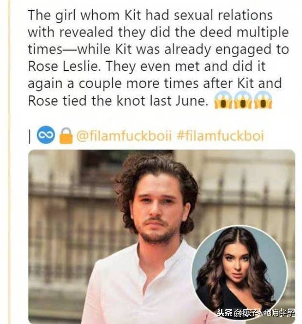 《权力的游戏》扮演者雪诺出轨嫩模,画面不忍直视