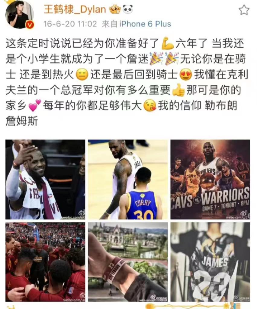 这已经不是王鹤棣第一次在自己的微博发关于詹姆斯的内容了。2016 年开始,王鹤棣就开始发 " 应援文案 " 小作文了。在此前的一次采访中,王鹤棣大方的承认自己从小学六年级起就喜欢詹姆斯了,从小学时期算起王鹤棣喜欢詹姆斯大概也已经有 13 年了,实在是个长情的忠实粉丝呢。