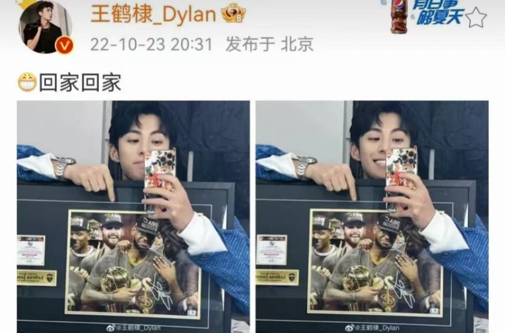 之前在一次品牌直播活动中,王鹤棣收到了品牌方赠送的詹姆斯 2016 年的签名球衣,在现场王鹤棣就对签名照片爱不释手,活动结束之后还不忘和自己偶像的周边合影,开心地不行。