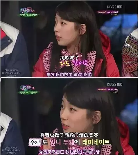 从熊孩子到干瘪少女,再到土肥圆,秀智跟普通女孩并无不同,每个时期都有不同美丑,但五官基本没啥变化。而被媒体曝出的所谓“承认整容”,其实也只是在一次综艺中,就自己整牙的事说了一句“我也做过”……