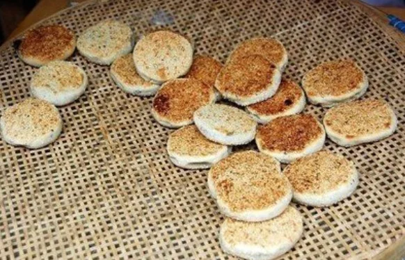 打狗饼子通常是用玉米面制作,做出来的饼小而薄,饼上有很多的小棘刺,有的农村会在其中加上一些碎头发。