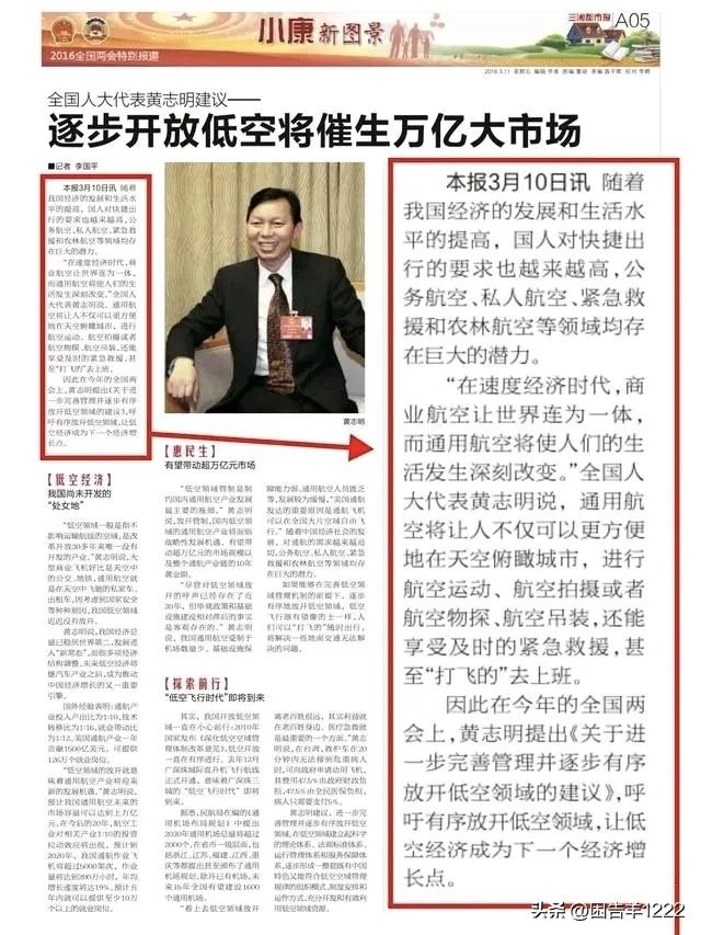 湖南成为我国首先全域低空空域管理试点省,这离不开黄志明先生的建议。2016年的全国两会上,黄志明就提交了《关于进一步完善管理幷逐步有序放开低空领域的建议》,让低空领域成为下一个经济增长点,催生万亿大市场。在出租车都打不起的年代,他有着超前思想,在世界第一单体高层建筑,他设了8个直升机起降点,可停靠118架直升飞机,总建筑面积达42.6万平方米,比迪拜哈利法塔还要大8万方米。