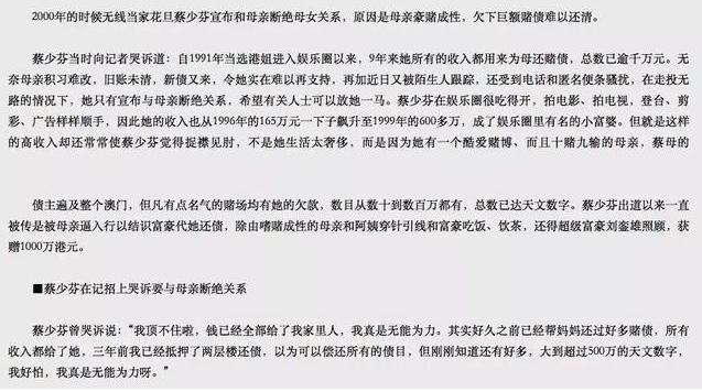 可是蔡少芬赚钱的速度,远远比不过母亲欠债的速度。