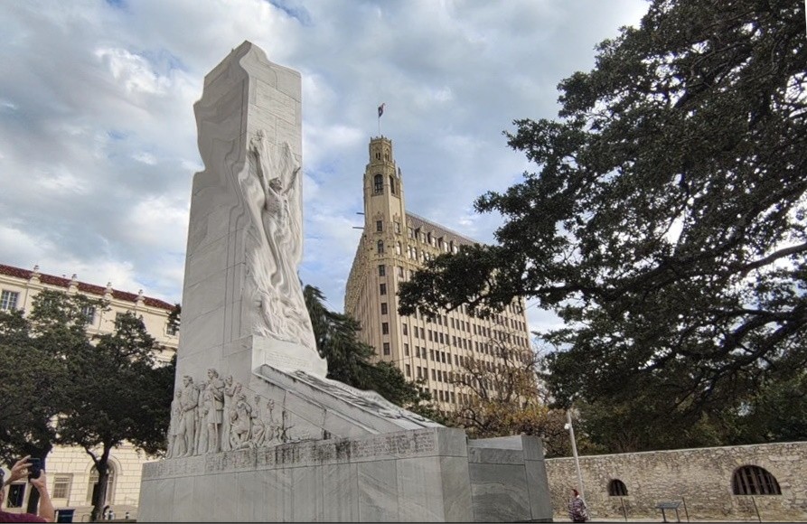 这是德克萨斯革命纪念碑,除了主碑上的耶稣受难的雕像,下面还有很多教徒,他们紧握拳头向前冲,有点前赴后继的感觉,这种场面对很多人来说,应该不陌生。