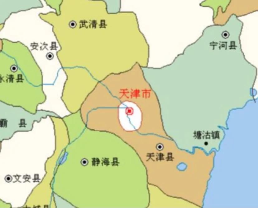 1652年(清顺治九年)天津卫、天津左卫、天津右卫合并成天津卫,此时以海河为界,今天的天津市区北部属于武清县管辖,南部属于静海县管辖。