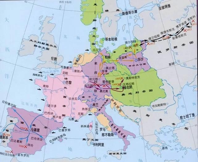 那为何会形成这样的一个版图呢?还要从拿破仑说起。1804年,拿破仑称帝神圣罗马皇帝兼奥地利领主纠合英国,俄国,瑞典和那不勒斯,组成第三次反法同盟。1805年,帝国在俄军支援下入侵法国盟国巴伐利亚。拿破仑东进应战并打败第三反法同盟后,开始肢解神圣罗马帝国,隔年拿破仑成立以自己为护国公的莱茵邦联,并胁迫奥地利皇帝放弃神圣罗马帝国称号