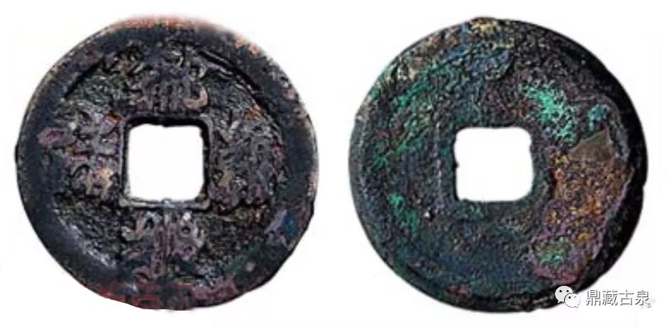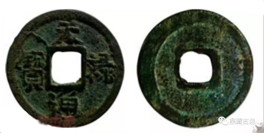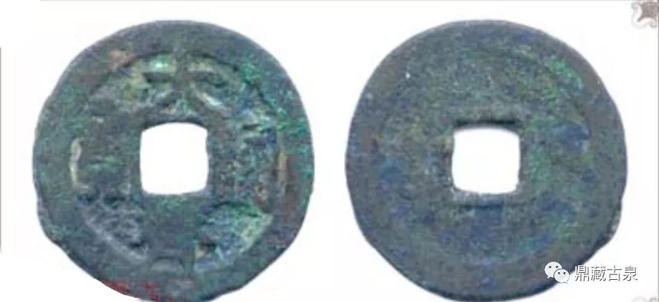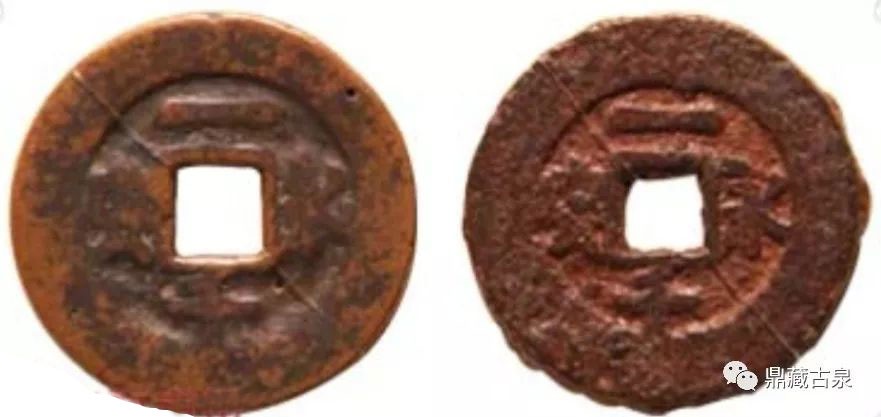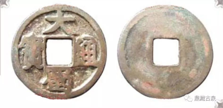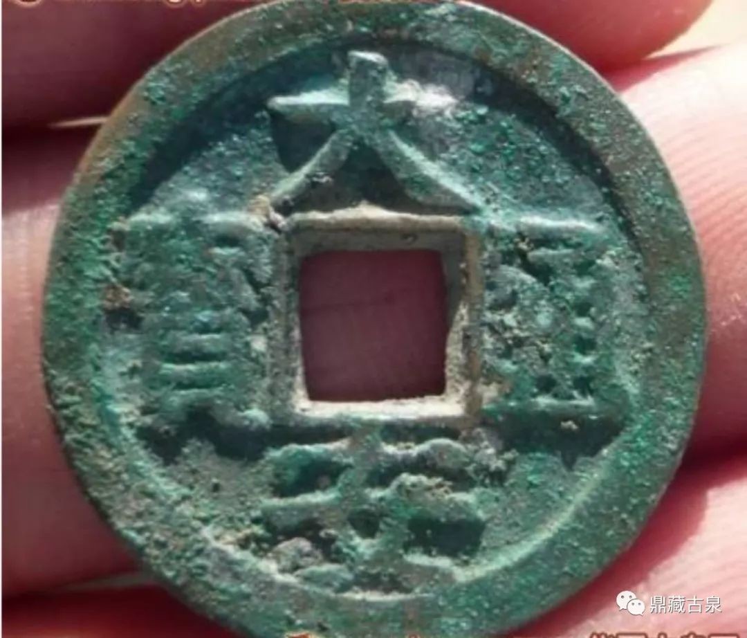 9.大泉五千:公元239-246年。三国吴钱,孙权赤乌元年至九年(公元238-246年)所铸大钱。篆书“大泉五千”四字旋读,一当五铢五千。是继王莽后最大的虚值钱。早期就入评中国古钱“五十名珍”之一,至今亦鲜有发现,2011年嘉德秋拍出品一枚,估价20~35万元,未成交。
