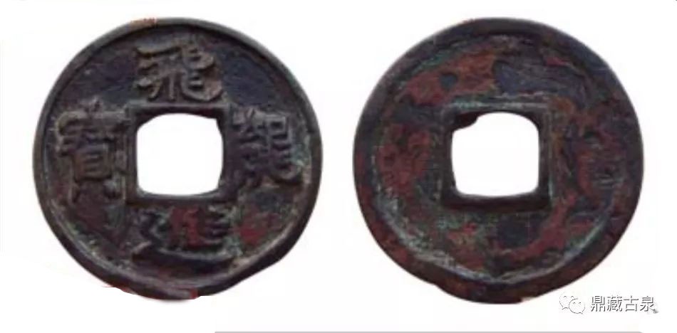18. 飞龙进宝:南汉高祖刘暠白龙元年(公元925年)铸币。乾亨九年(925年)八月,改元白龙,刘岩也改名刘龑,取飞龙在天之意,铸飞龙进宝,仅见大钱两枚,小钱一枚。飞龙进宝”大钱,著名的钱币收藏家马定祥断其为五代十国时期南汉国王刘岩改名刘龚时(公元841年)特铸的庆典钱,是我国历代古钱中奇珍之品。“飞龙进宝”银质大钱,存世更是极少,罕见品,泉界大珍。飞龙进宝存世罕见,加上性质特殊,为旧古钱五十名珍之一,国内暂无上拍记录。