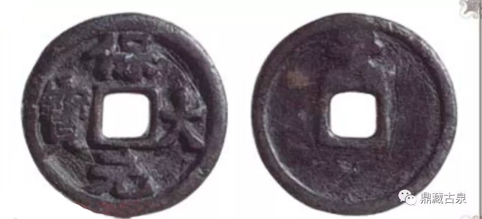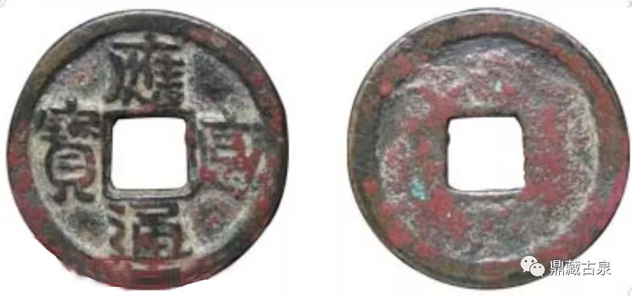 34. 景福通宝:辽兴宗耶律宗真景福年间(1013~1032年)铸,稀见。面文“景福通宝”隶书旋读,光背。早年即为辽钱大珍,近年陆续发现数枚,国内无拍卖纪录,估计市场价格在20万元左右。