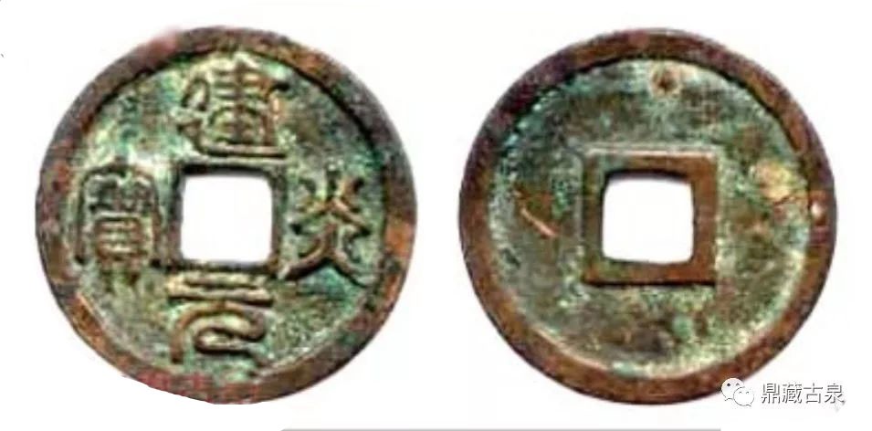 29. 建炎元宝:南宋高宗建炎年间铸,仅见小平钱,钱文篆、隶成对,铸造量极少,目前市场价格在15万元左右。