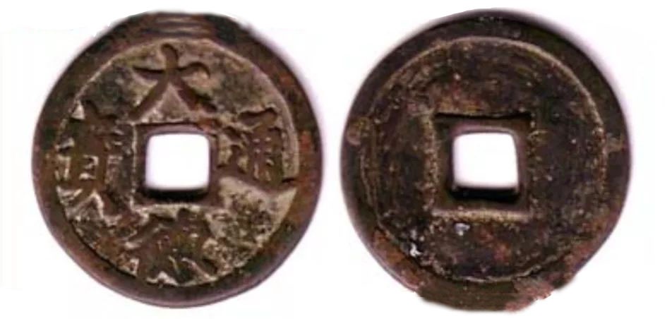 10.太夏真兴:相传公元419年,大夏国国王赫连勃勃还都统万(今陕西靖边白城子),改元真兴并铸“太夏真兴”钱。大夏(古时“太”与“大”同义)乃国号,真兴乃年号。“太夏真兴”钱是我国最早的一枚国号、年号并铸在一起的钱币,存世稀见。太夏真兴目前发现共7枚(含博物馆馆藏),近年国内无拍卖纪录。